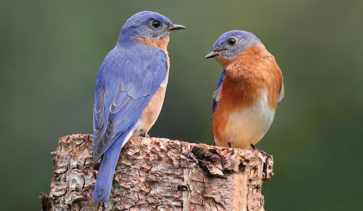 Eastern Bluebirds (Sialia sialis) are small thrushes that nest in tree cavities in open habitats such as meadows, fields, and forest openings. Competition from non-native European Starlings and House Sparrows, which also nest in cavities, led to a steep decline in the bluebird population. Conservationists responded in the 1970s, forming the North American Bluebird Society, which led an effort to erect wooden nest boxes. Today, Eastern Bluebirds are commonly seen in pastures, agricultural fields, and suburban parks, where they nest in boxes provided by concerned citizens and conservation organizations.