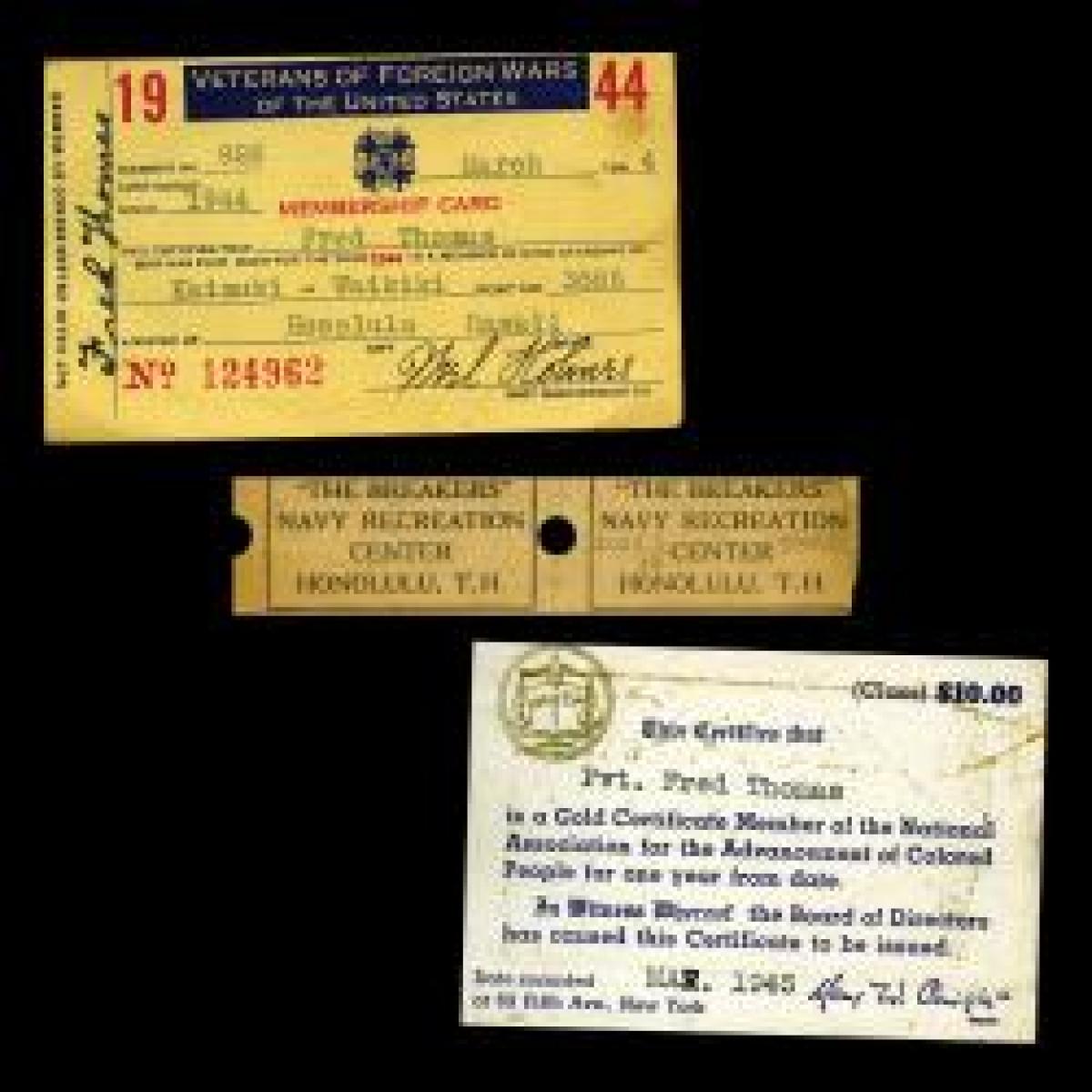 The New York State Museum presents this collection of documents, photographs, and ephemera relating to Private Fred Thomas, an African American Veteran of World War II. Thomas joined the All Black 369th Coast Artillery Regiment (Anti-Aircraft) of the New York National Guard. This regiment had garnered fame during World War I as the 369th Infantry Regiment, also known as the Harlem Hellfighters.
