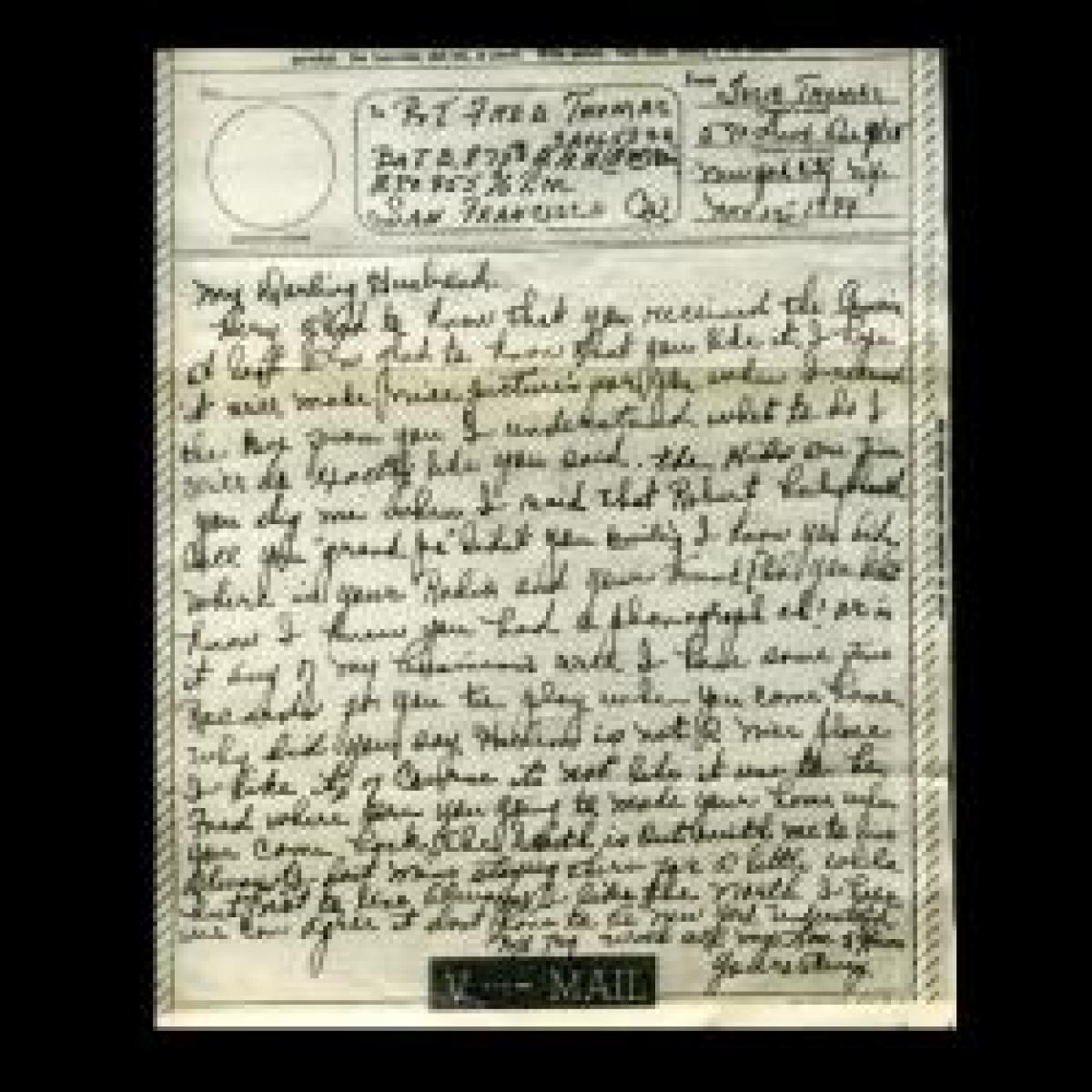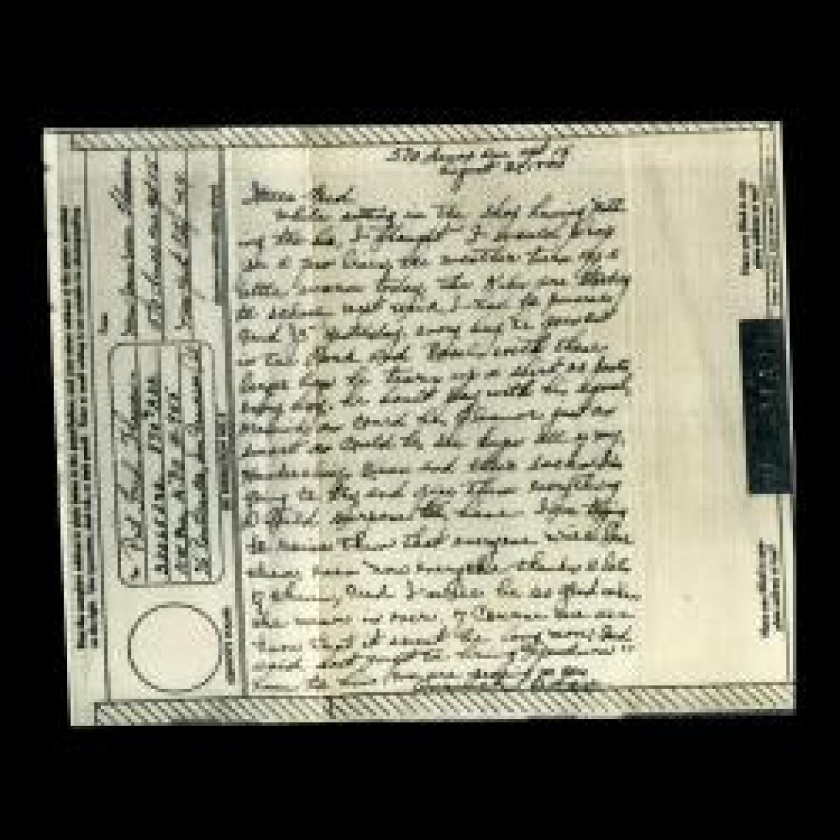 This wonderful collection also contains nearly two dozen V-mail letters, or Victory Mail, written to Private Thomas by his wife, Josie, in New York City. V-mail was a mail service used by the US to deliver letters to soldiers overseas by using microfilm to reduce the size and weight of mail. The letters were imaged stateside and printed in the theater of operations for delivery to the troops. Josie’s letters afford a rare glimpse into life on the Home Front for an African American woman and her family during World War II.