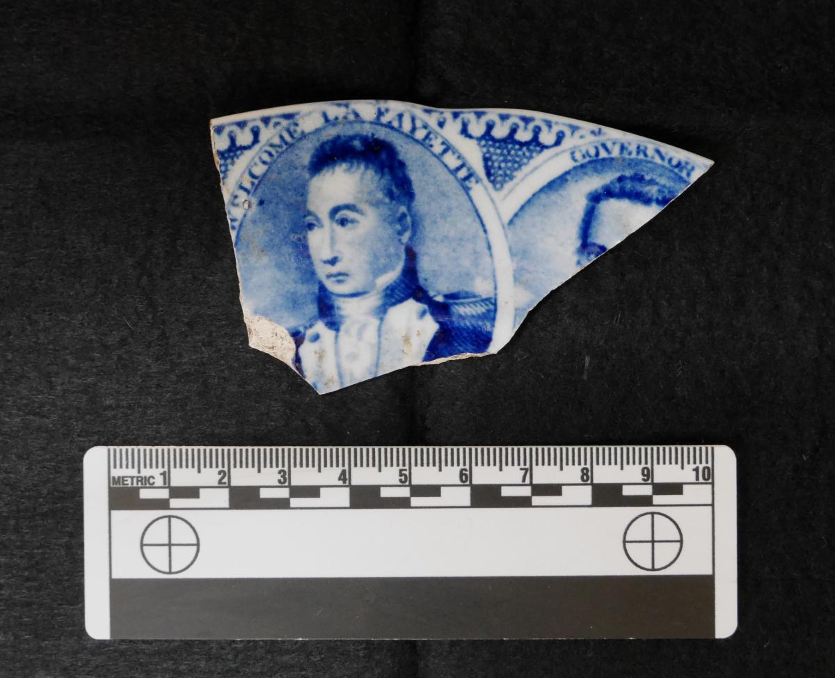 The semicentennial anniversary of the American independence was celebrated with a year-long tour of the United States by Lafayette. The general was hailed as a hero as he began his tour in New York in 1824. British potters took advantage of this patriotic sentiment in producing commemorative plates for the American market. Collections at the New York State Museum suggest that New Yorker’s had keen appetite for these symbols of the new republic. Pictured are Lafayette plates from Albany and New York City collections dating to the late 1820s. Comparative research is currently underway by Lucas to measure levels of consumption of these patriotic symbols by variables such as class and political engagement.