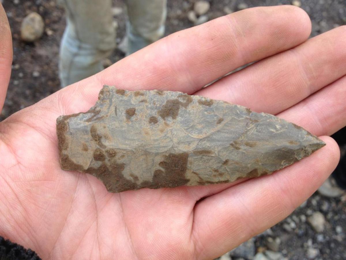 Though the artifact analysis is still ongoing, some notable artifacts recovered during the excavations include a variety of domestic artifacts relating to the residential structure, as well as some relating to the stone workshop. Many of the artifacts recovered from under the parking lot relate to a short-lived restaurant at the adjacent property of 700 Bristol. Interestingly, a Late Archaic Genesee projectile point was recovered from a unit, which was found at what archaeologist have determined to be a buried nineteenth century surface, under periods of historic fill and topped with the asphalt parking lot. This point appears to be historically curated, or historically redeposited and not to be part of any prehistoric occupation at this location.